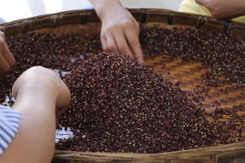 每年立秋前后至处暑前后,是汉源花椒的采摘旺季。这个时期的花椒果皮已成紫红或者淡红色,果皮缝合线突起,少量裂开,种子黑色光亮。离花椒田数十里远,就可闻到浓郁的麻香味。