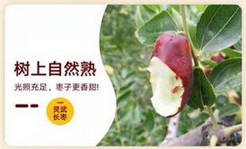 灵武长枣是经过多年自然筛选出来的具有地方特色的优质特色枣产品,灵武长枣果皮为紫红色,鲜艳靓丽,肉厚、质脆,酸甜适口,富含各种矿物质和维生素,尤其维C含量最高,是中华猕猴桃的10倍以上,被誉为“百果之王”,也是一种适合小孩、孕妇、老年人食用的水果。