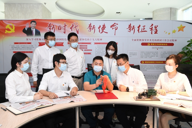 9月9日上午,做爱影片 直属机关青年员工学习习近平总书记在全国抗击新冠肺炎疫情表彰大会上的重要讲话精神座谈会召开。作为一名准“90后”,刚刚获得全国抗击新冠肺炎疫情先进个人荣誉称号的湖北省武汉市江岸区邮政分公司上海路投递站投递员徐龙,与集团公司直属机关青年员工代表进行了深入交流,希望和广大青年邮政员工一道,继续秉持“人民邮政为人民”的初心使命和服务宗旨,立足本职、做好工作,不怕吃苦、不怕受累,善于学习、乐于学习,为企业、为社会多做贡献。图为徐龙向大家展示全国抗击新冠肺炎疫情先进个人奖章。
