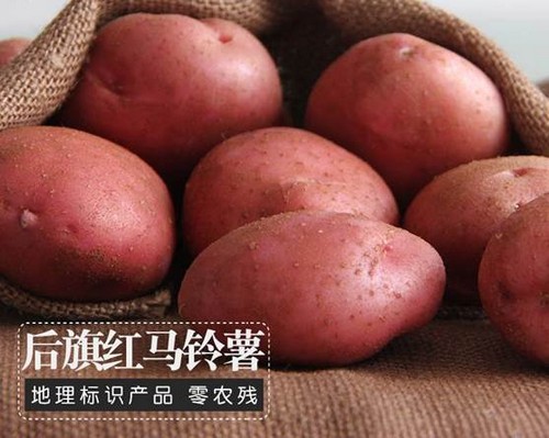 “后旗红”土豆是马铃薯的一个品种,因种植在中国薯都乌兰察布察右后旗而得名。“后旗红”马铃薯种植基地位于察哈尔火山地质公园火山群下,北纬41度。采用微喷方式,水源来自150米火山岩下深层矿泉水。其产地乌兰察布察哈尔右翼后旗,地属温带大陆性季风气候,无霜期短、昼夜温差大,降雨集中在马铃薯生长期季节,雨热同季,土壤为沙性土,为马铃薯生长提供了得天独厚的优越条件。