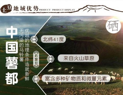 在这里种植土豆比起其他地区有着独特的土壤优势,因为这里位于内蒙古自治区的火山地质公园—乌兰哈达火山群,覆盖着马铃薯优势区,在这里盛产的马铃薯有“皮红、内黄、质绵口香”的特点,被人们誉为“火山滋养的绿色食品”。