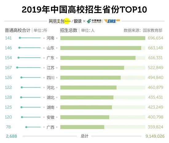 根据网易数读的数据,录取通知书的地区发放比例,也预示着大学新生们将在哪里展开他们新一段的人生。