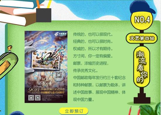 小小一张邮票,浓缩着历史的进程,更是对传统文化的传承。爱好集邮的你,一定不要错过今年邮政数字化的邮票预订新形式,2021年邮票预定已经在中国邮政APP、中国邮政微邮局微信公众号、邮票百科小程序等线上渠道同步开售。除此之外,针对Z时代的潮流青年们,更是提供了邮票手账、邮票盲盒等个性化产品,带你进入集邮的精彩世界!