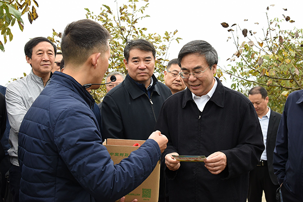 图为2019年10月17日,刘爱力一行来到陕西商洛进行实地调研,了解集团公司定点扶贫项目的进展情况。