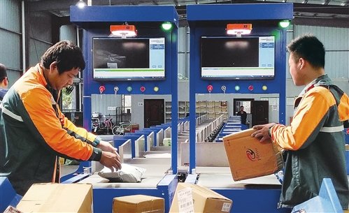 在“双11”前,浙江省杭州市邮政分公司在4个经营部安装了自动分拣机。当邮件到来后,员工在车厢尾部卸包裹,直接把包裹放在供包机上。包裹随着皮带机爬上分拣台,负责分拣的员工将包裹面单朝上,分拣台上的摄像头一扫,包裹便根据扫描的信息落入相应的段道格口。经营部安装了自动分拣机后,以前是25名员工1个小时分拣3000件邮件,现在6个人就能用1个小时分拣完3000件邮件,同时,作业现场一改往年包裹摆摊、员工无地下脚的场景。目前,有的经营部每日进口邮件量较平时增长75%,但有了自动分拣机,揽投员早晨出班时间可提前40分钟。