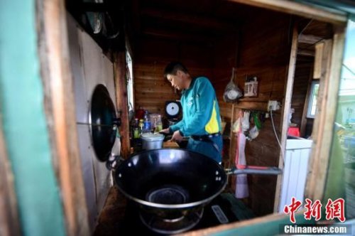 石进全在海上邮局里做饭,这里也是他平常居住的地方。