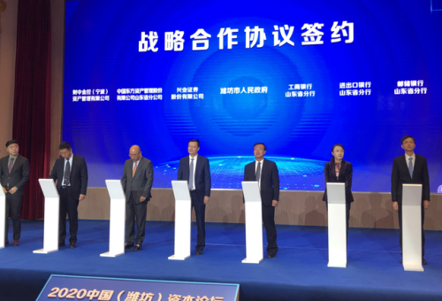 11月10日,2020 中国(潍坊)资本论坛暨地级市资本活力指数发布会在潍坊举行,会上,邮储银行山东省分行与潍坊市政府签署战略合作协议。