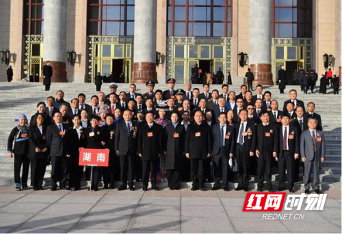 湖南省的“全国劳模”在人民大会堂前合影。