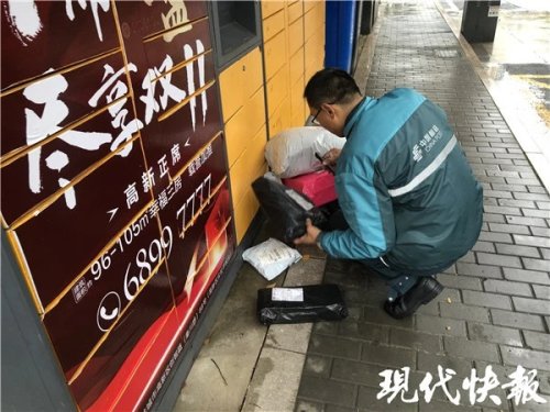 当天早上7点,天气寒冷,空中飘着淅淅沥沥的小雨。现代快报记者来到盐城市大学城营投部,只见十几个快递员正在热火朝天地分发快递。