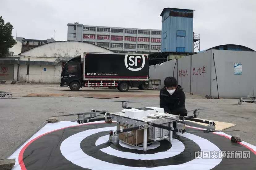 疫情防控期间使用无人机为武汉金银潭医院运送紧急防疫物资。