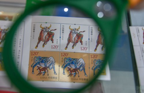 1月5日在长春拍摄的《辛丑年》特种邮票。新华社记者 张楠摄