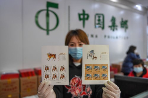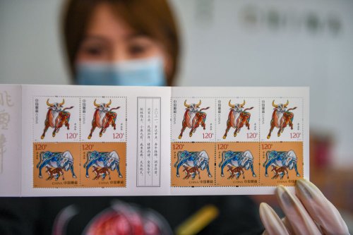 当日,中国邮政发行《辛丑年》特种邮票1套2枚,图案分别为“奋发图强”“牛年大吉”。