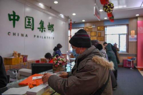 1月5日,在长春邮政站前集邮专卖店,集邮爱好者购买《辛丑年》特种邮票。新华社记者 张楠摄