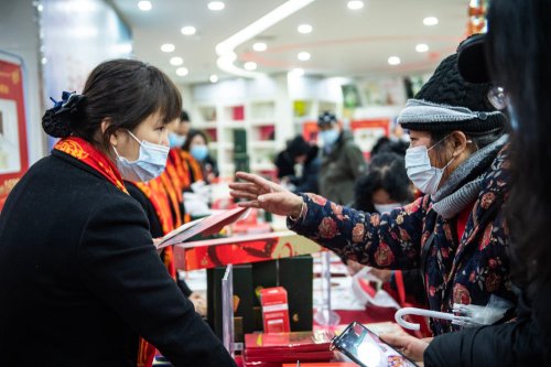 1月5日,购买《辛丑年》特种邮票的贵阳市民排队进入销售大厅。新华社记者 陶亮 摄