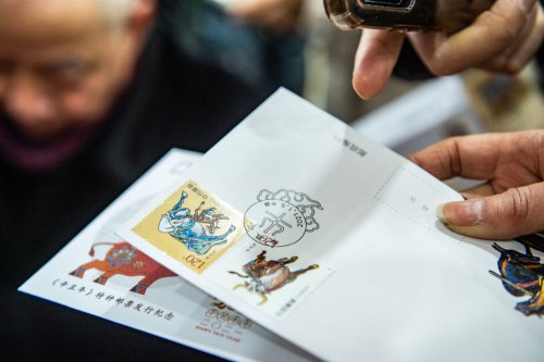 1月5日,在长春邮政站前集邮专卖店,集邮爱好者展示《辛丑年》特种邮票。新华社记者 张楠摄