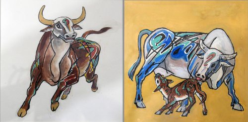 这是姚钟华为《乙丑年》(1985年)特种邮票绘制的稿样原件(1月5日摄)。新华社记者 李贺 摄