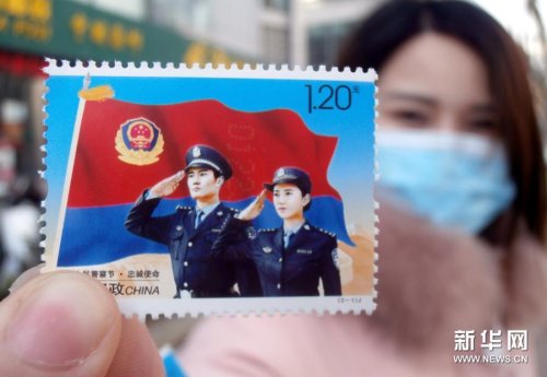 1月10日在江苏苏州拍摄的《中国人民警察节》纪念邮票。新华社发(王建康 摄)