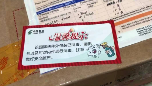 ★ 消费者在接收国际邮件时做好二次防护,佩戴好一次性手套和口罩,并及时对内件进行消毒。