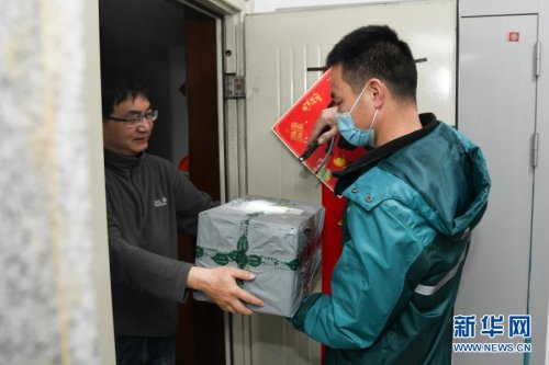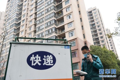 2月11日,中国邮政揽投员刘元元在安徽省合肥市青阳路社区一处居民小区内派送快递。当日是除夕,不少行业的工作人员依然坚守岗位,在工作中迎接春节的到来。