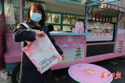 另外,樱花邮局专门打造了东湖风景纪念戳、赏樱地标戳等18款专属纪念戳。赏樱期间,游客可在樱花邮局领取一张手绘地图,集齐5处指定地标的纪念戳,即可领取一份专属樱花礼品。