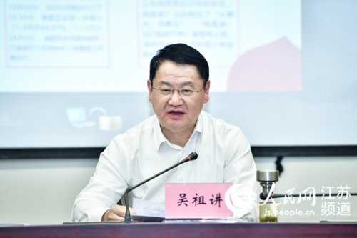邮储银行江苏省分行党委书记、行长吴祖讲主持会议