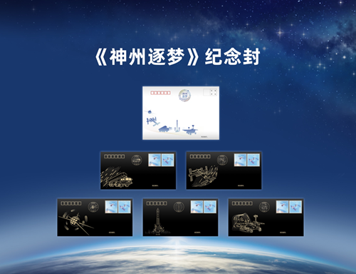 《神州逐梦》系列纪念封,包括《东方红一号卫星》《快舟火箭》《中国空间站》《导弹发射车》和《天问一号探测器》五枚,由310所航科公司年轻的设计团队策划并设计。纪念封采用黑色特种纸烫金工艺,深邃的黑色象征着广袤的宇宙和无限可能的未来,金色的航天器、火箭、空间站、导弹发射车、探测器在黑色背景上闪闪发光,熠熠生辉。这套能引发人们太空遨游畅想的主题设计方案,开创了中国邮政全黑烫金纪念封的先河,酷炫的外表下,进一步提升了该系列纪念封的收藏价值。