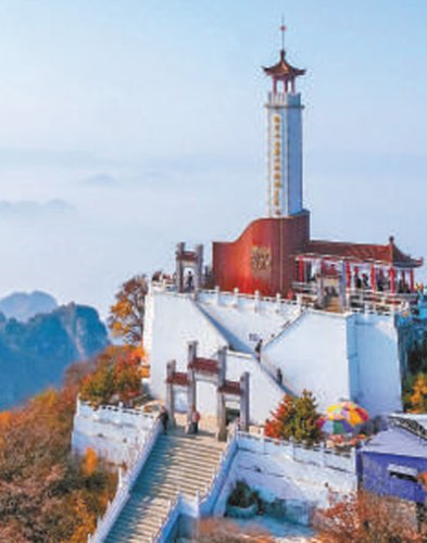 这是狼牙山棋盘陀峰顶的狼牙山五勇士纪念塔。