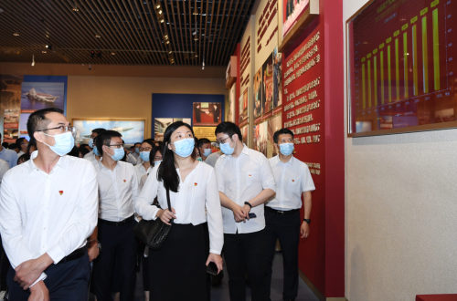 百年征程波澜壮阔,百年初心历久弥坚。党史馆犹如一部立体党史教科书,全体参观人员寻着中国共产党百年历史发展脉络,仔细参观了“建立中国共产党 夺取新民主主义革命伟大胜利”“成立中华人民共和国 进行社会主义革命和建设”“实行改革开放 开创和发展中国特色社会主义”“推进中国特色社会主义进入新时代 全面建成小康社会 开启全面建设社会主义现代化国家新征程”等4个部分的展览内容。2600余幅图片和3500多件套文物实物,全方位、多角度地展现了党的不懈奋斗史、不怕牺牲史、理论探索史、为民造福史、自身建设史。全体参观人员认真观看丰富翔实的图片、资料和鲜活的实物、逼真的复原景观,不时驻足讨论,共同回顾感悟中国共产党领导人民创造的新民主主义革命的伟大成就、社会主义革命和建设的伟大成就、改革开放和社会主义现代化建设的伟大成就、新时代中国特色社会主义的伟大成就。