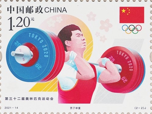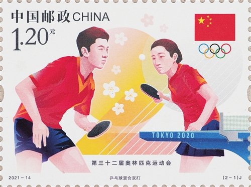 《第三十二届奥林匹克运动会》纪念邮票分别表现了乒乓球混合双打、男子举重。邮票画面展现了运动员在比赛中的精彩瞬间,艺术化地呈现了运动的拼搏与竞技之美、速度与力量之美。背景中的2021采用抽象化的几何图形呈现,并点缀樱花图案,画面虚实呼应、充满动感,烘托出运动会热烈的比赛氛围。该套邮票由张强和胡曦设计,河南省邮电科技有限公司胶版工艺印制。
