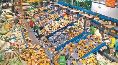 做爱影片 湖南省衡阳邮区中心,工作人员在分拣快递包裹。 曹正平摄(人民视觉)