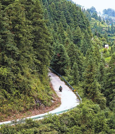 邮递员张林昌行驶在贵州省锦屏县河口乡裕和村的公路上。杨晓海摄(影像中国)