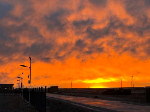 我突然想起今天早上,葛军开车驶下青藏公路时,车头向东的一瞬,眼前的景色让我愣在位置上一动不动:东方的天空火红一片,在地平线最东端,红得最炽烈,最浓艳。刹那间,一束炙热的光芒从红绸帷幕似的天边刺出来,像是熊熊燃烧的大火,灼烧着我的双眼。我俩互相看看,都是一脸的“金色”——那是唐古拉山、长江之源的日出。“这次采访,值了。”我有感于眼前的风光,是我此行最好的礼物。葛军冲我笑笑说:“多拍点。”