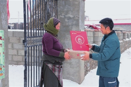 接过哈弄夺机送上的邮件和邮政新春福袋,杨措奶奶操着一口不熟练的汉语笑着对记者说:“这是孙女在网上买的年货,这些天都是夺机在给我们送年货,真的辛苦他呀!”