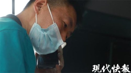 收拾完东西,徐斌如往常一样,给妻子打了电话,"你平时多买点吃的,别光顾着照顾家里,也多关心关心自己。"徐斌叮嘱着。他平时住在员工宿舍,妻子和父母都在六合,他回家的时间很少,对于家人总觉得亏欠。虽然每周都有一天休息,但是他考虑到疫情影响,还是先不回去了。"以前小孩也向我抱怨过,为什么没时间陪他,后来他慢慢长大了,说的也就少了,现在他已经上高一了。"说到儿子,徐斌疲惫的脸上满是笑意。
