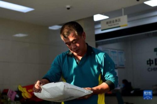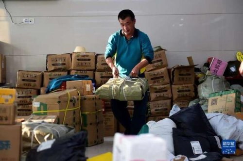 10月28日,吴义阳在北中邮政支局分拣快递包裹。