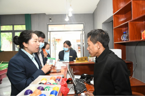 沐恩邸社区宏鹰茶楼老板吉觉勒果热情地接待了前来外拓的土比妞牛,刚一坐下就说:“听说你们在推广商户收款二维码,钱直接打在卡上,不仅免手续费,还送个大喇叭,现在就给我安装一个呗。”