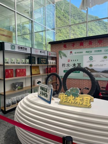走进金米村木耳产业园内的柞水木耳展销中心大厅,这里关于柞水木耳的栽培技术要点、菌包制作流程和各类木耳产品的实物展示,内容翔实。