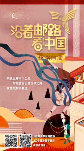 “沿着邮路看中国”邀您一起做线上“云游客”,足不出户领略祖国大好河山,创造沉浸式打卡的“新体验”,以全国首批交互式数字集戳册打造集戳文化“新国潮”,通过数字化方式沿着邮路看中国,讲述与每一位参与者都有关的“新丝路”故事。