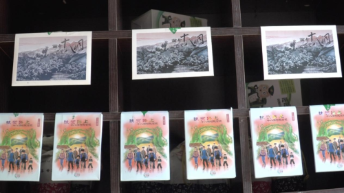 在主题邮局内,还摆放着苗族的特色产品,其中村民的苗绣手工艺品很受游客的喜爱,同时,展示、销售系列政务类图书,也有不少游客驻足翻看。