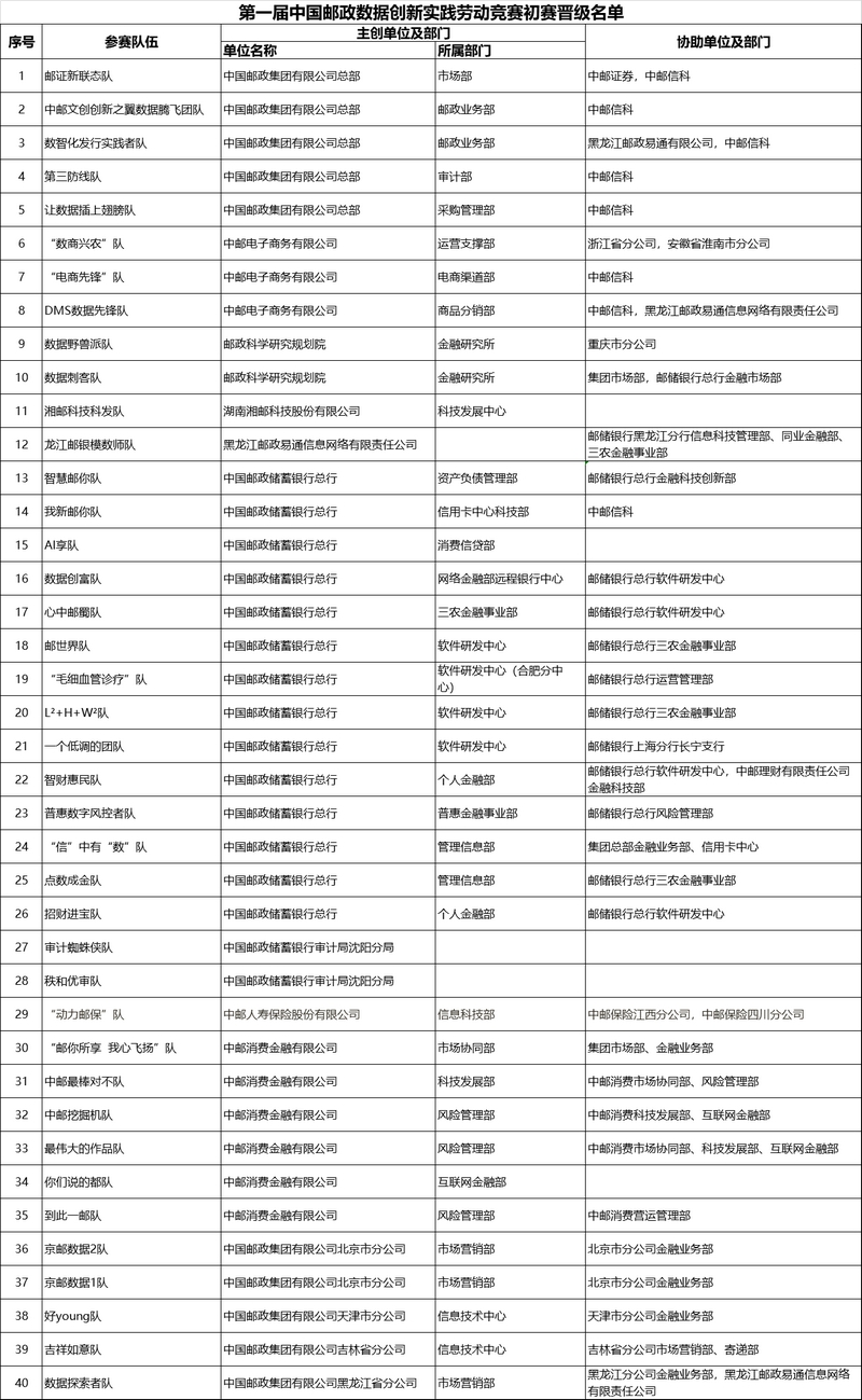 集团公司和集团公司工会联合举办的第一届中国邮政数据创新实践劳动竞赛已进入初赛收官阶段,初赛评审总结会于2022年10月12日顺利召开,集团公司计划建设部吴咏梅副总经理、中邮信科公司张百龙副总经理出席会议初赛评审总结会并讲话。