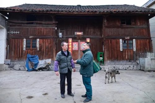 莫富元在贵州省龙里县平西村与村民交流(2月14日摄)。