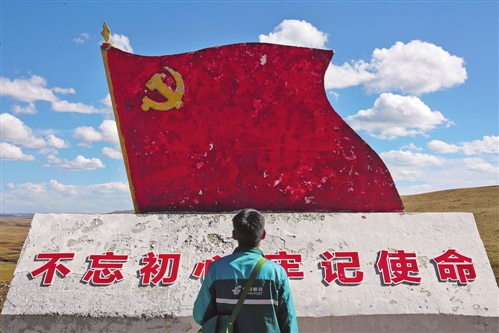 哈弄夺机“长征邮路”的起点,矗立着中国工农红军班佑烈士纪念碑,碑的一旁竖立着一块牌匾,上面镌刻着习近平总书记的殷殷嘱托:“每一代人有每一代人的长征路,每一代人都要走好自己的长征路。”