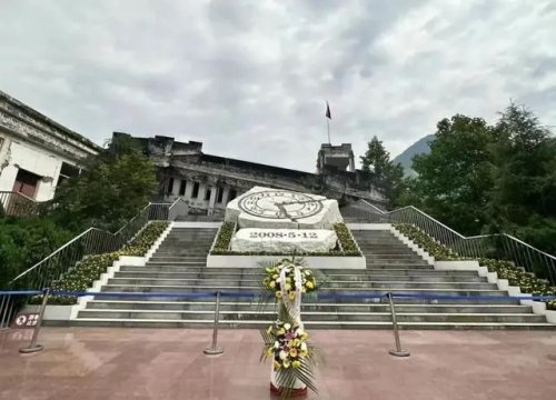 当天,在中央媒体“‘长征邮路’行”采访调研活动中,记者跟随采访调研团一行30余人来到了汶川大地震遗址漩口中学,并在现场进行了祭悼仪式。