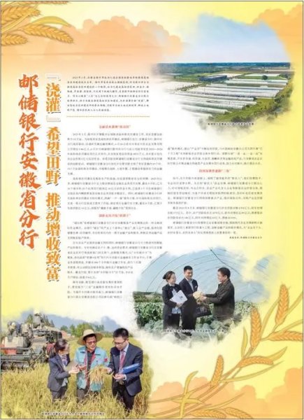 邮储银行安徽省分行将继续立足安徽省情农情,围绕现代农业发展新特点新要求,主动切入重要项目和重大工程,创新金融产品和服务模式,为“农业有干头、农村有看头、农民有奔头”的壮美画卷添上浓墨重彩的一笔。(数据来源:邮储银行安徽省分行)