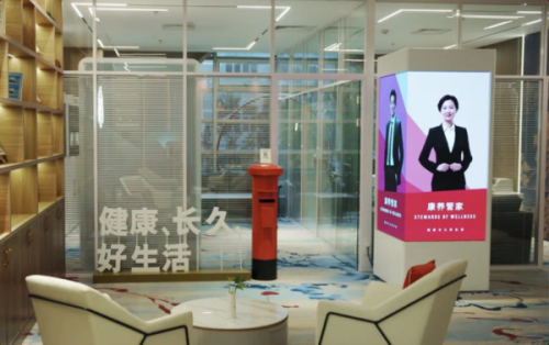 客户进入体验舱后,可通过“见礼”、“尊享”、“知己”、“相宜”、“入微”、“延续”六大服务环节,以及五大体验模块,全方位展示友邦人寿联合中国邮政储蓄银行为客户提供的全面的健康及财富管理服务。