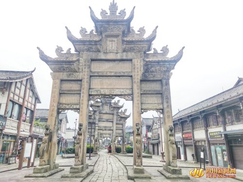 徜徉在隆昌北关至南关的成渝古驿道上,远远望去,石牌坊群鳞次栉比,蔚为壮观。脚下,使用上百年的青石板路爬满了青苔,随着驿道旁古琴商店中传出的古筝乐声,仿佛穿越到了那个衙差纵马疾驰、商贾往来不绝的时代。