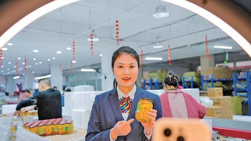 “南瓜、烟薯、板栗,我们都卖过。有时候,我们还会深入田间地头,现场直播售卖。”刚结束直播的主播王阅介绍,目前,黄桃罐头多次蝉联抖音全网食品带货第一名。