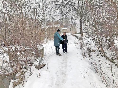 2月4日,地处鄂西北边陲的湖北口乡厚雪积压,地面结冰,湖北省十堰市郧西县邮政分公司湖北口支局投递员李善记坚持徒步进村为村民投递邮件。□周晓瑜 王嫣 摄影报道