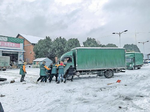 2月3日,湖南省张家界市突降大雪,张家界市邮政分公司第一时间启动冰雪天气应急方案,督促为驾驶车辆安装防滑链,采取防护措施,做好及时接卸和投递邮件的工作,全力保障邮运驾驶安全和邮路畅通。□王伍军 卓蕾 摄影报道