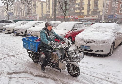 2月4日,江苏省淮安市迎来强降雪。淮安邮政分公司投递人员坚守岗位,在大雪中小心骑行,将一份份报纸、一件件包裹准时送到客户手中。 □陈浩 摄影报道